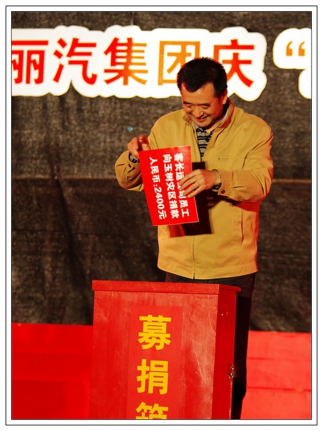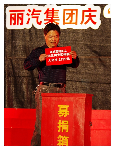 演唱會上,麗汽集團員工為玉樹地震災區進行了捐款,所募集的21981元善款轉交市慈善總會。