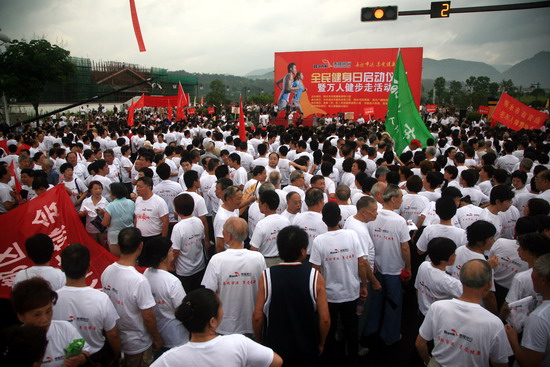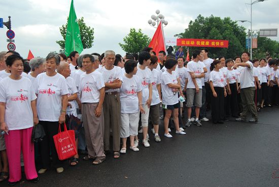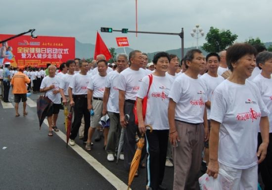 為慶祝全國首個“全民健身日”,8月7日上午7:00,麗水市“全民健身日”暨萬人健步走活動在市區南明湖濱水公園正式啟動。 集團公司組織了15名健身愛好者及60名老年體協成員參加了本次活動。 健步走隊伍在麗水市委書記陳榮高的帶領下,從濱水公園出發,沿著花園路-囿山路-宇雷路-江濱路返回濱水公園,盡管活動開始后不久,天空就下起了小雨,但是這絲毫沒能阻擋大家的熱情,隊伍冒雨堅持走完了全程。到達終點后,大家在印有麗水市“全民健身日”暨萬人健步走活動的橫幅上簽字。