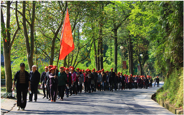 共有一百多名老同志參加了本次活動,大家從白云森林公園廣場出發,沿著白云山棧道至雙橋健步走了3公里。大家一個個精神抖擻、興高采烈,龐大的隊伍成為森林公園一道靚麗的風景線。
