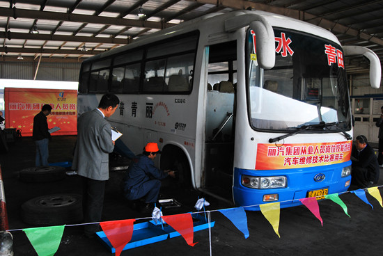 11月13日上午9點整,汽車維修技術比賽在快客分公司修理車間舉行,快客分公司修理車間和客長運分公司修理車間各派出4名選手,選手根據抽簽,完成前橋、后橋作業??炜头止纠罱ú?、客長運分公司武賢強、快客分公司管巧全分獲前三名。