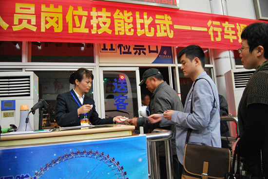 站售操作比賽11月14日晚,在旅游集散中心舉行??瓦\東站、客運西站分別派出4名選手參賽。經過角逐,客運西站封慧麗、客運東站魏麗、客運西站林莉分獲前3名。
