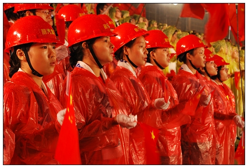 麗汽集團96位員工組成的合唱隊在雨中激情唱響《咱們工人有力量》。