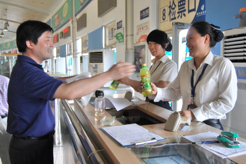 為做好夏季防暑降溫工作,今年集團公司除發放清涼飲料費外、還在給全體在崗員工每人發放了五豐冷食冷飲票。在做好員工的防暑降溫工作的同時,集團公司客運東、西站候車廳所有空調全部啟用,客運東站還打開吊扇,確保室內空氣的流通,為旅客營造了舒適、清涼的候車環境,"流動之家"服務班還在原來送茶水的基礎上,增添了送涼茶(金銀花茶)服務項目,受到旅客的好評。