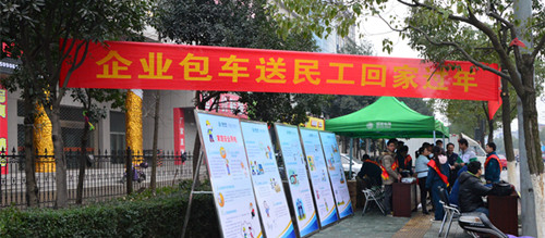為確保民工回家之路走得更順利,1月7日,在麗水開發區舉行的“民工服務月”中,處州晚報、麗水市總工會和麗汽集團聯合推出“企業包車送民工回家”活動,向民工朋友發放了100多份“企業包車送民工回家”宣傳資料,現場辦理企業包車、拼車和散票購票業務。