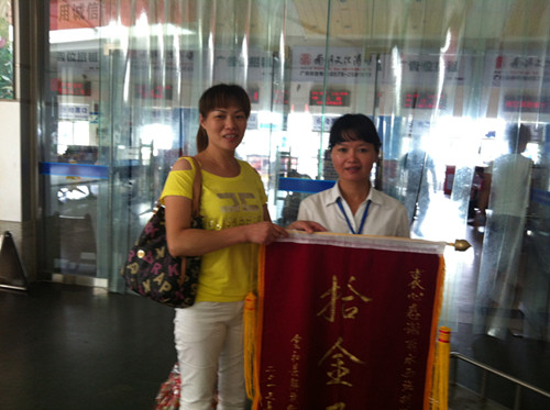 7月20日上午,客運西站值班室迎來一位特殊的客人。她執意要找到客運西站行車員胡堅芬,將一面寫著“拾金不昧”的錦旗和一個水果籃交到胡堅芬手中,并再三表達了對胡堅芬的謝意。