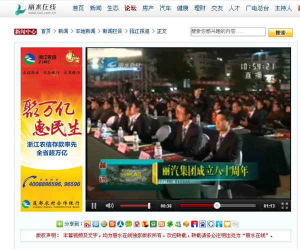 11月20日麗水電視臺經濟生活頻道 甌江報道《麗汽集團成立80周年》