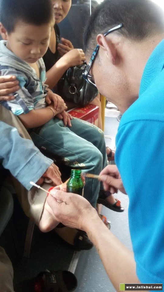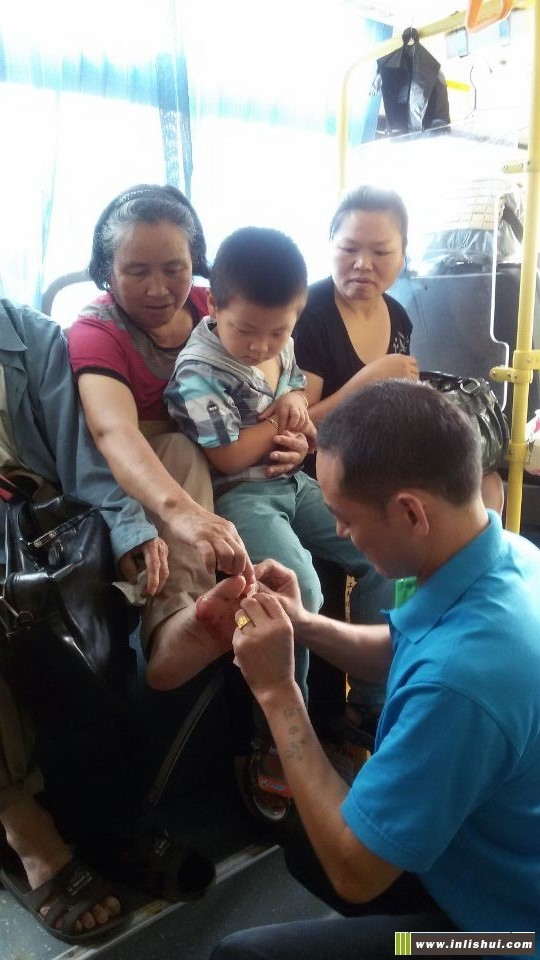 前天網友“鷹鷹”在論壇上發貼說:7月2日下午3點20分,我在中東路口站牌,乘301路公交車去鄉下老媽家。路上,由于旅客很多,一個大爺站在后門邊,不小心腳趾被門碰開一個口子,我們旅客不知道車上備有常用藥物,只知道給他餐巾紙以止血。公交車駕駛員得知有乘客傷了出血,馬上將車子??窟吷?,然后,從車上的急救箱里取出:碘酒、藥水棉花、創口貼等,因為老人是坐在座位上的,司機幾乎是跪在車廂地面,老人的腳也有些臟,但司機托著老人腳,細心的為大爺擦洗、消毒、包扎。他的行為,讓滿車的旅客齊贊他是一個好師傅。