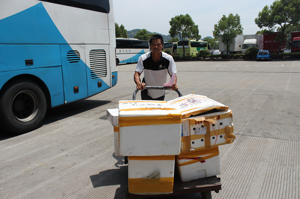 要論炎夏最辛苦的崗位,很多人自然會想到行李房的裝卸工。行包裝卸工冒著熱浪辛勤作業,準時地收發一批批貨物。行包房收發的貨物很多都是大件貨物,輕的幾十斤,重的二、三百斤,一批貨物裝卸下來,裝卸工的衣服都能擰出水來。37度的高溫,平常人在太陽底下站上幾分鐘都受不了,行包裝卸工卻要負重往返在車輛和行李房之間,絕大部分時間都是在露天發車區作業,其辛苦可想而知。雖然被熱浪蒸得暈暈乎乎的,他們卻一點也不敢大意。這么熱的天氣,海鮮水產、鮮活貨物很容易腐敗變質,一個不小心錯發誤發帶給客戶的可能不僅是時間精力的損耗,更會造成客戶直接的經濟損失。所以即使再熱再辛苦,清點、裝卸、核對,整個流程他們絲毫沒有一點含糊!