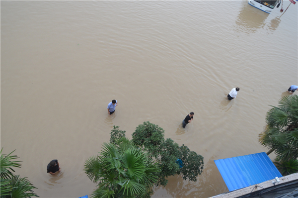 集團公司公會主席呂麗君走到小轉盤路口時,大水已經沒過大腿