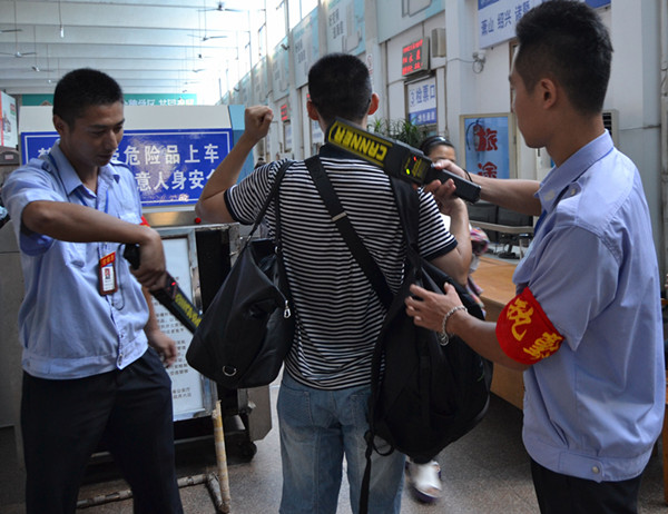 21日,隨著東站干部員工自救和兄弟單位的及時援助,東站的所有班線恢復了正常通車。生產正常了,安全也不能放松。東站經理室緊急布署了安檢工作,要求危檢崗位工作人員要進一步提高責任意識和大局意識,在洪災過后和“青奧會”期間的雙重安全形勢和任務下,及時引導旅客,利用手持危檢棒認真查堵危險品,把安全隱患消除在萌芽狀態,為旅客筑起一道牢固的安全防線。