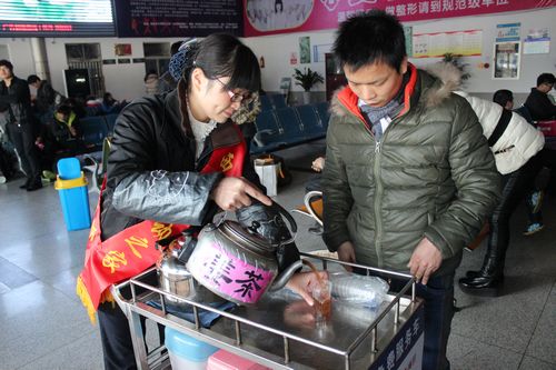 昨天進入到大寒節氣,今天馬上就有一股冷空氣來應景,氣溫有小幅的下降。一大早西站“流動之家”服務班的崗員們就準備好一大壺熱氣騰騰的姜茶,免費為候車大廳的旅客送上熱姜茶,幫助他們驅去寒意,溫暖回家的旅程。