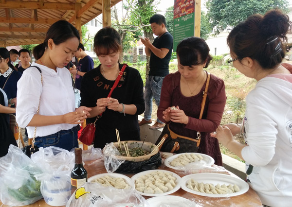 5月23日,一大早大家就趕到公司集中,清點完人數后我們就往目的地出發了。到達目的地后大家就開始分工準備我們豐盛的午餐,包水餃的包水餃、燒烤的燒烤,大家伙都開始忙開了。一大群小姑娘圍著大姐學習怎么包水餃,小姑娘們就是心靈手巧,不一會功夫,肚子鼓鼓的水餃就包好了,就等著水開下鍋了。在女同胞學包水餃的同時,男同胞也在準備著美味的燒烤。胡重慶和孫秀峰是我們的專業燒烤男,炎熱的天氣,加上烤爐炭火的熏蒸,汗如雨下,但他們一直“堅守崗位”,認認真真的為大家準備美味的午餐。男同胞們不僅態度認真,技術也是一流的,燒烤不論是賣相還是味道都是超贊。很快,一大鍋翻滾的水餃起鍋了,一盤盤噴香的燒烤也擺上桌了,大家圍著桌子大快朵頤。自己包的水餃和燒烤總覺得特別的美味,一大鍋的水餃一下就被搶空了,很多女生還因為動作慢沒搶到急得直跺腳。