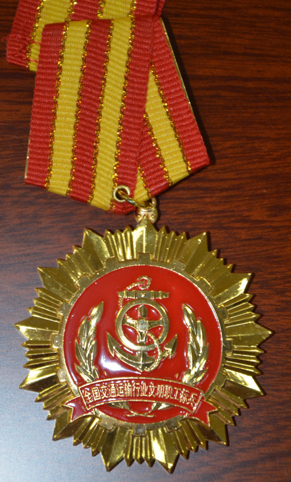 吳斌(左)榮獲全國交通運輸系統勞動模范、全國交通運輸行業文明職工標兵稱號