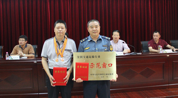 6月30日上午,市交通運輸局召開會議,表彰“模范司機”吳斌榮獲全國交通運輸系統勞動模范、全國交通運輸行業文明職工標兵稱號。在全市交通運輸系統年中安全生產會議開始前,市交通運輸局黨組書記、局長葉沙平親自為吳斌頒發了證書、獎章。會議還同時表彰了330國道麗水超限運輸監測站獲得全國交通運輸行業文明示范窗口稱號。