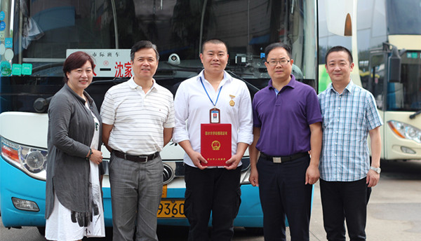 6月5日上午,麗水市總工會領導專程到麗汽集團客長運分公司,給“最美司機”章雙林送來麗水市勞動模范獎章和證書。