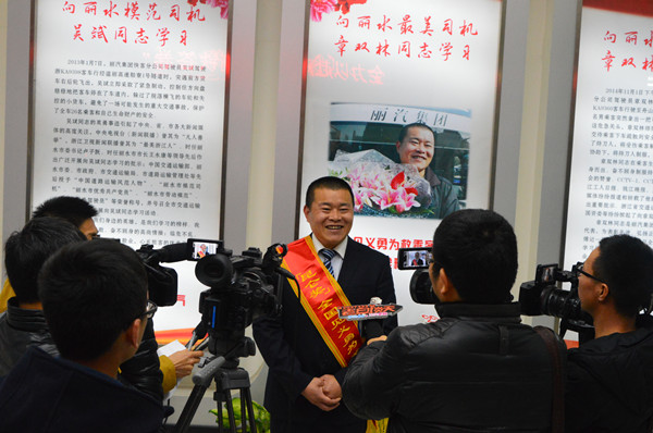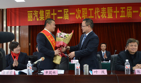 朱祖新說:“章雙林受到全國(層面)的表彰,他的事跡非常感人。特別是他領到獎金后,首先想到的是要捐贈給蓮都區雅溪鎮里東村的困難群眾,這種慈心和善舉非常美好,確實值得大家學習?!?br/> 麗水市總工會黨組書記,常務副主席陳子民也發表了熱情洋溢的講話。陳子民說:“麗汽集團一貫實施的強化員工素質提升、民主管理、員工關愛、創新創效和黨群共建“五大工程”,有效培育了一支一流的員工隊伍和積極向上的企業文化。在麗汽集團的最美創建活動中,先后涌現一大批先進模范人物,有“最美司機”吳斌、“全國見義勇為英雄司機”章雙林,還有被市委書記王永康專門批示“向明霞同志表示敬意”的最美辦公室主任徐明霞等杰出代表。就在剛才,全國見義勇為英雄司機章雙林赴京表彰載譽歸來,馬上就向里東災區捐出“全國見義勇為英雄司機”的獎金,讓我深受感動。這些先進模范人物能在麗汽集團不斷涌現,決非是偶然。它一方面是因為麗汽集團有著深厚的企業傳統文化,是一個充滿正能量的優秀企業;另一方面更是麗汽集團長期注重企業文化培育的結果?!?br/> 在章雙林發言之前,麗汽集團總經理薛和有向大家報告了章雙林獲得“全國見義勇為英雄司機”和“中國好司機”并北京人民大會堂接受表彰的情況。麗汽集團黨委書記、董事長葉茂代表集團公司全體干部員工向章雙林獻花,歡迎英雄載譽歸來!