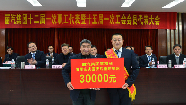 12月25日下午,麗汽集團召開十二屆一次職工代表暨十五屆一次工會會員代表大會,在大會正式議程開始前,章雙林決定,捐贈出剛剛獲得的五萬元獎金,其中3萬元捐贈給里東災民幫助他們災后重建,剩余的2萬元獎金捐給身邊急需救助的人員。章雙林在發言中說:“我只是一個平平常常的客車司機,只是履行了一個司機的責任。我做了一件小事,公司和社會卻給了我這么高的榮譽,給了我這么多的贊美和鼓勵,更加堅定了我今后努力做好旅客服務工作的信心和決心。麗水是我生長的地方,我對這里充滿了感情。麗汽集團是我成長的地方,我對這里充滿了感激。為回報大家,現在我決定,將其中3萬元獎金,捐給里東災民,幫助他們災后重建,剩余的2萬元,我也將陸續捐出來,幫助身邊急需救助的人員。希望里東災民早日重建家園,希望身邊的人員都健康平安?!?br/> 隨后,麗水市蓮都區慈善總會會長朱祖新來到會議現場接受了章雙林的捐款。