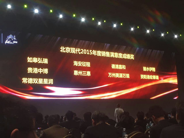 從2月20日在韓國舉行的《領現代?勝未來2016年北京現代經銷商營銷工作會》上傳來喜訊,北京現代麗水伊翔店以優質的客戶服務及較高的客戶滿意度,榮獲2015年銷售滿意度成績獎。