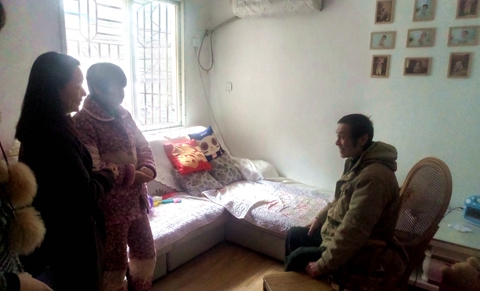 在下半身癱瘓的王華民家,王旭詳細了解他的身體情況和家庭生活狀況,勉勵他要保持樂觀心態,堅定生活信念,按時參加單位組織的員工健康體檢。同時也表示如果他家里人手不夠,支部會及時安排黨員志愿者上門,協助他完成健康體檢,幫助他解決實際困難。