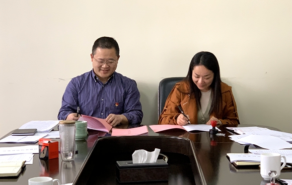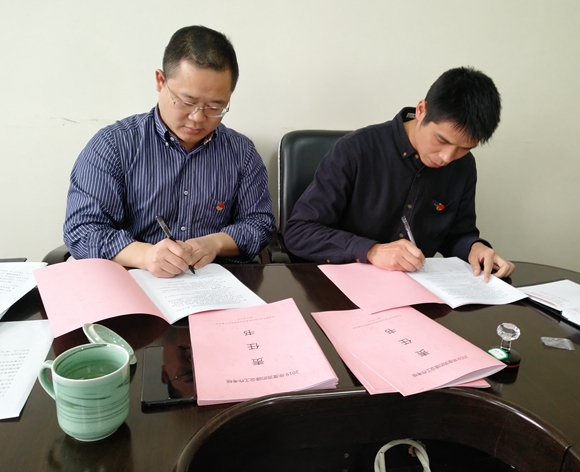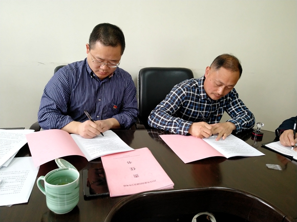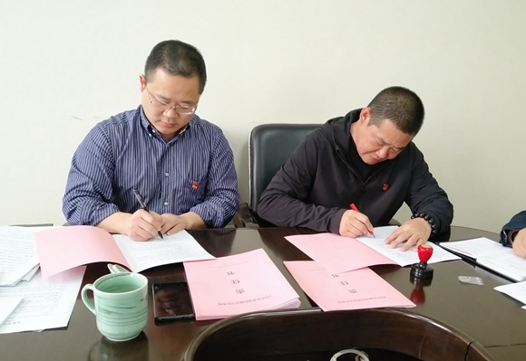 圖為集團公司黨委與黨辦及各黨支部簽訂《黨的建設工作考核責任書》