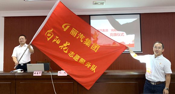專題黨課后,還舉行了麗汽集團“向陽花”志愿服務隊亮旗儀式。經過前期征名和討論,集團公司黨、政、工、團四條線的志愿服務隊合并定名為“向陽花”志愿服務隊,此舉將規范統一麗汽集團的志愿服務載體,使廣大黨團員和員工投身志愿服務的參與面更為廣泛。