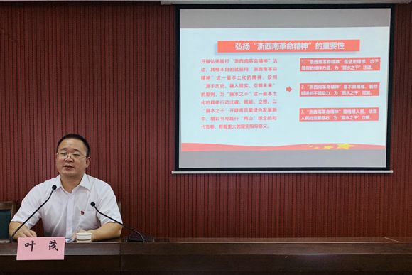 為傳達市人大常委會《關于弘揚浙西南革命精神的決定》精神,引導廣大黨員干部夯實黨務知識和工作水平,更好地弘揚踐行“浙西南革命精神”,7月31日,麗汽集團組織開展弘揚“浙西南革命精神”專題黨課暨黨務知識培訓。集團公司黨委書記葉茂上專題黨課,各黨(總)支部委員、團員干部等60余人參加學習培訓。