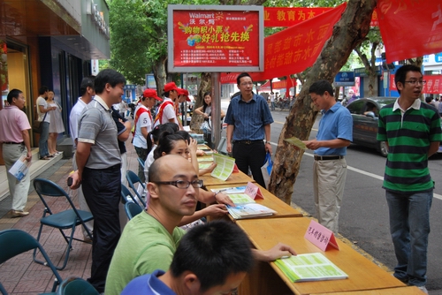 9月19日七時許,雖然麗水上空飄著毛毛細雨,但是這雨沒能擋住集團公司黨員服務隊為民服務的熱情,一行20人在黨委副書記薛和有的帶領下,早早就在市區中山街鬧市區擺開了陣勢,參加市直機關黨工委組織的黨員一條街便民服務活動。
