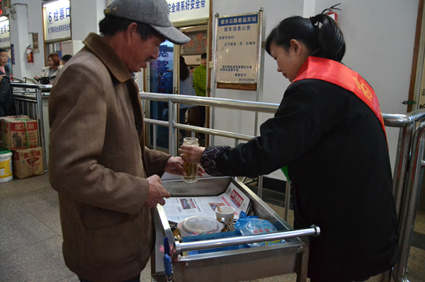 1月27日凌晨,一場不期而至的冷空氣光顧山城麗水,氣溫明顯下降。一大早,東站“流動之家”服務班的工作人員就準備好熱氣騰騰的茶水,穿梭于候車室免費為旅客送上,井然有序的候車室里,彌漫著濃濃的暖意。